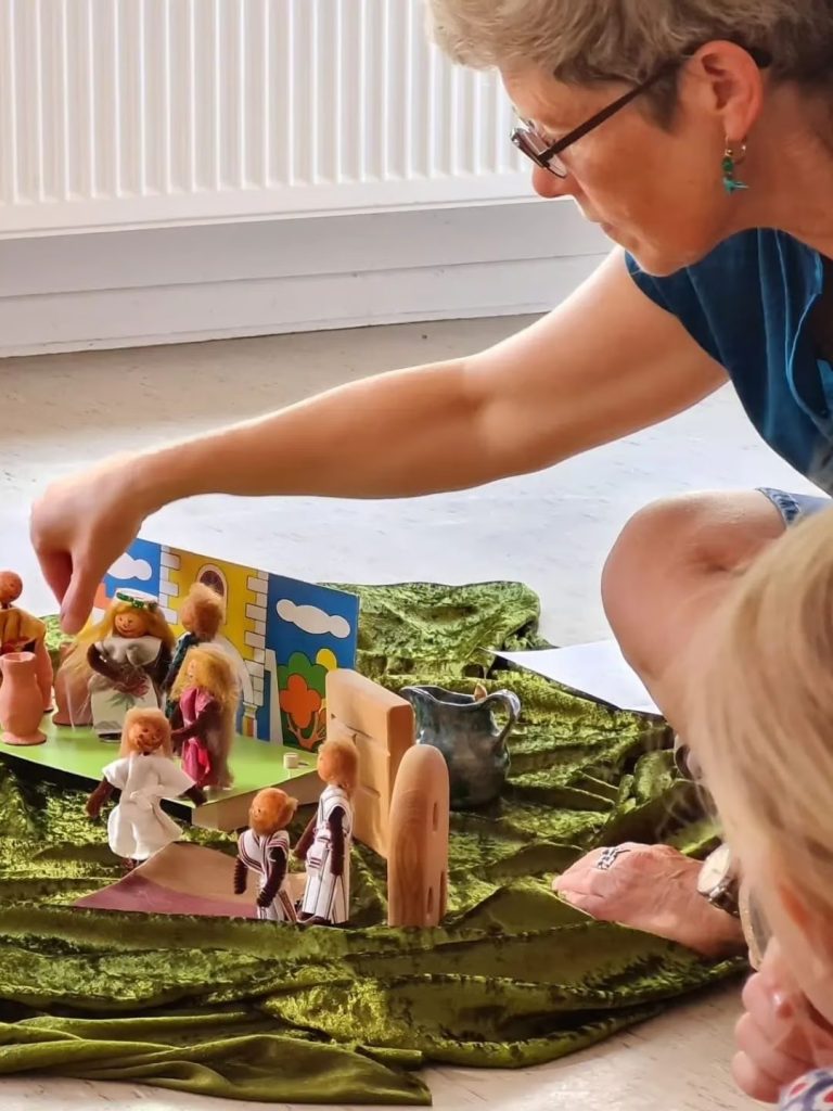 mit Materialien, mit Puppen, mit Tüchern, mit Wüstensack …