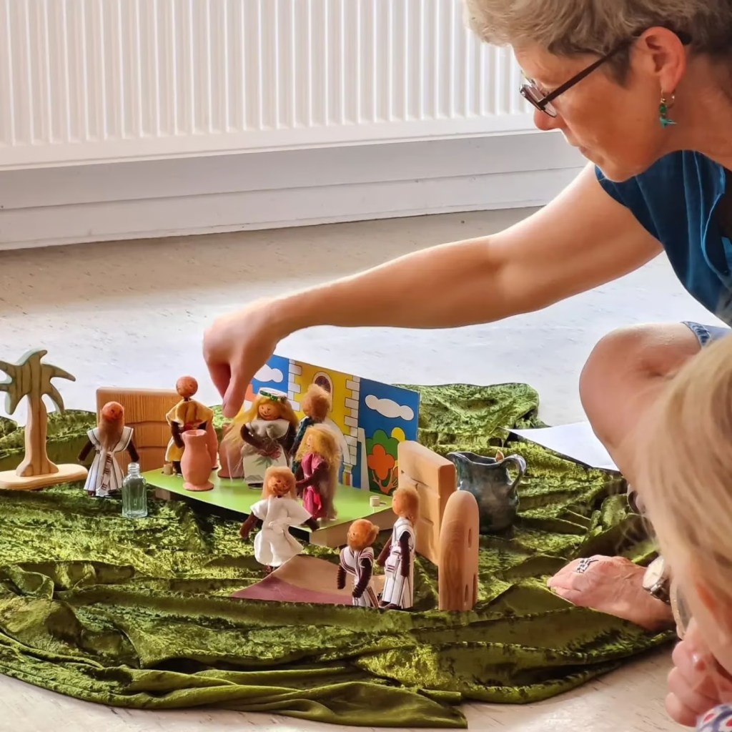 mit Materialien, mit Puppen, mit Tüchern, mit Wüstensack.